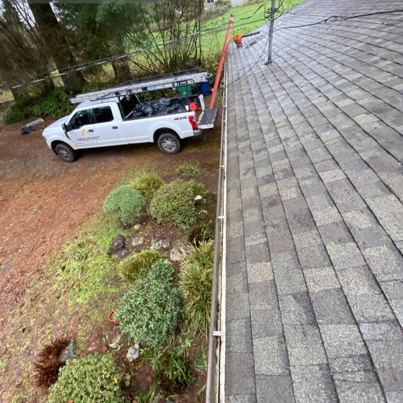 Endurant Roof provided roof cleaning in Snohomish, WA. The team removed roof debris using leaf blowers and cleared gutters to ensure proper water drainage. This service helps protect the roof and supports longer material lifespan through regular maintenance.