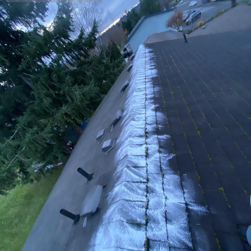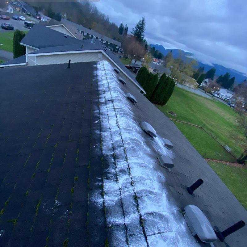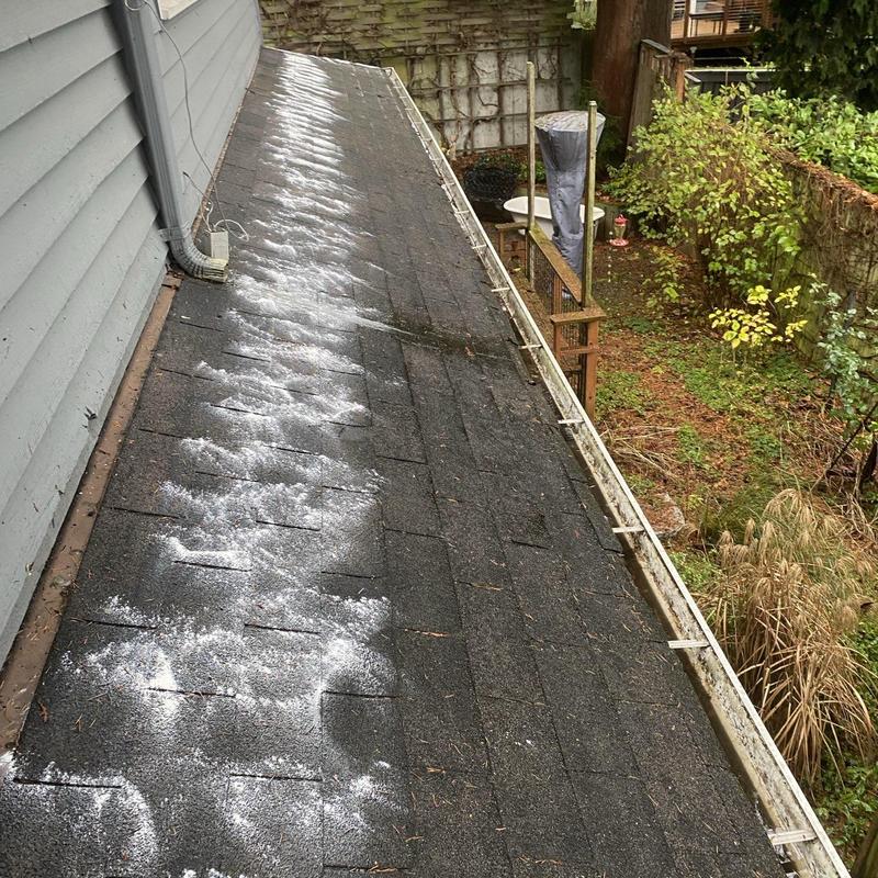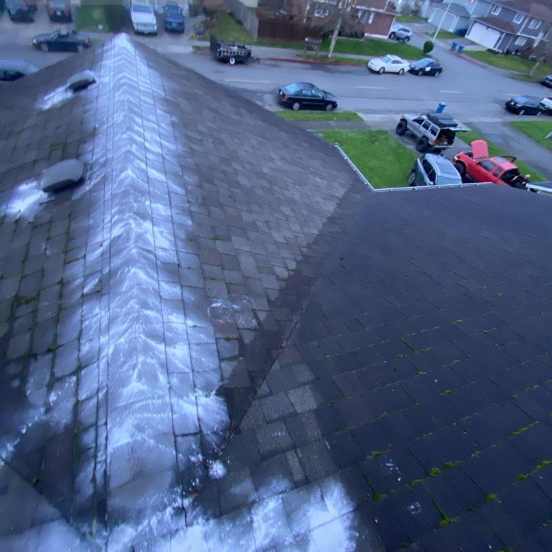 Endurant Roof cleared roof debris with a leaf blower and applied moss treatment in Everett, WA. This service removes organic buildup and limits moss growth, helping maintain the roof's surface and reduce long-term wear.