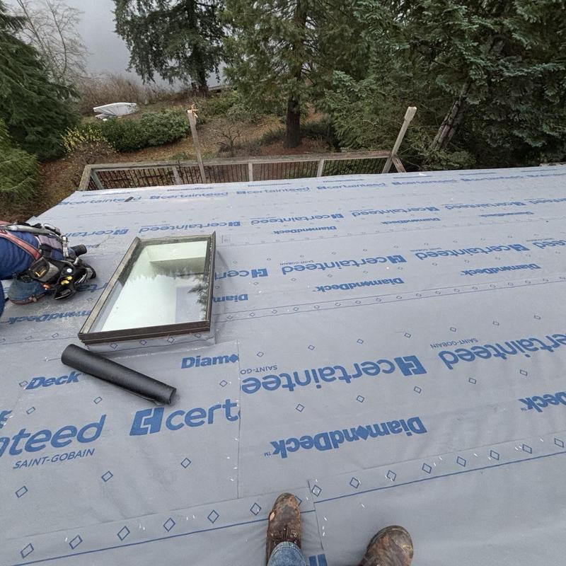 Endurant Roof removed old shingles and installed a waterproof underlayment in Seattle, WA. This underlayment strengthens the roof’s base and protects the home from leaks and weather damage, preparing it for new shingle installation.
