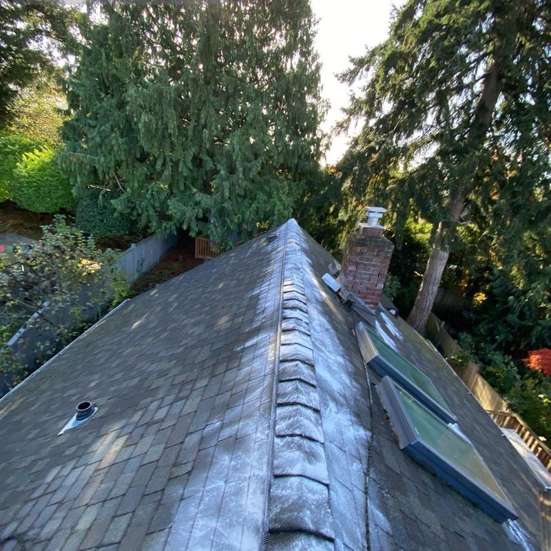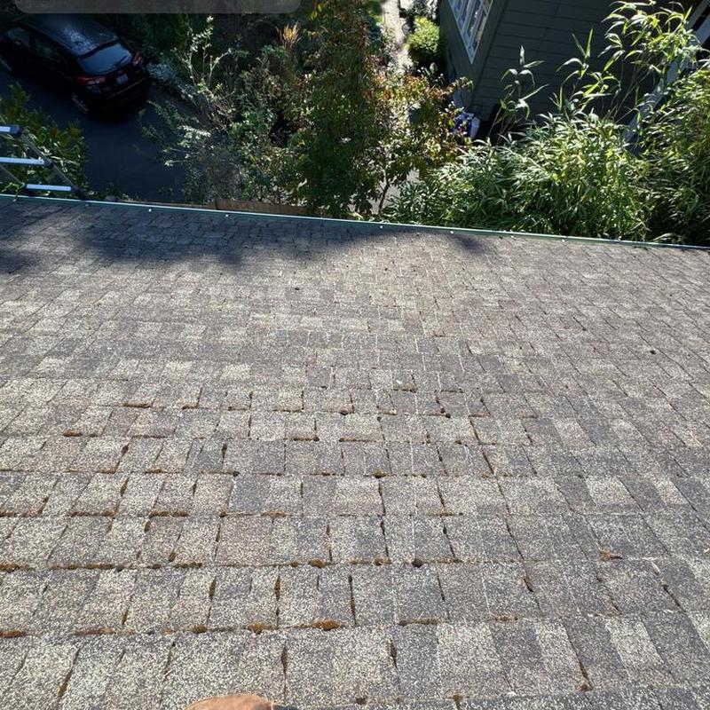 Endurant Roof removed debris, cleared gutters, and applied moss treatment to improve roof durability in Bellevue, Washington. This service helps prevent water damage and supports longer roof life by keeping drainage systems clean and surfaces free of moss buildup.