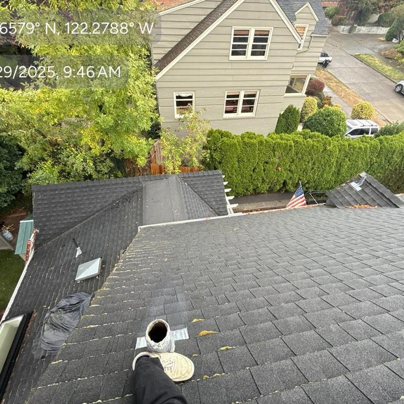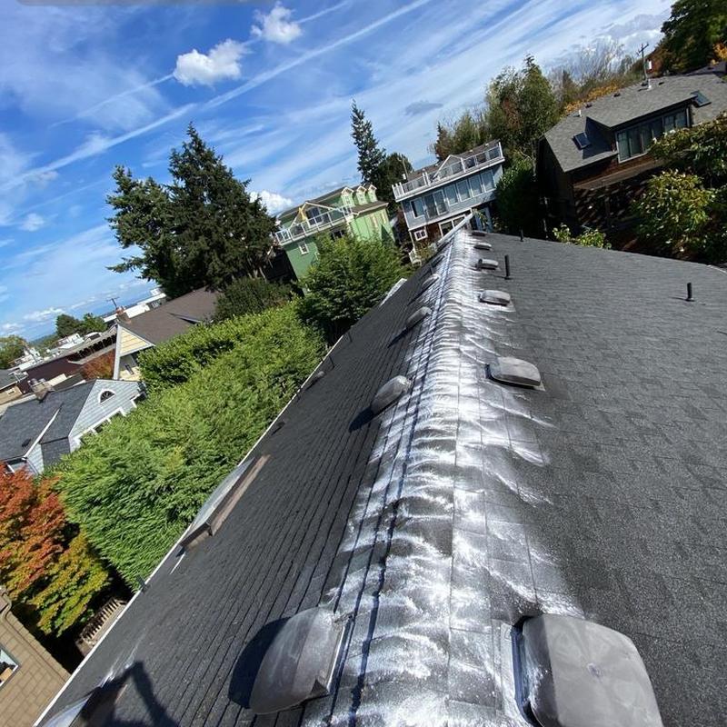 Endurant Roof installed shingles and ventilation systems on a residential roof in Seattle, Washington. All components meet manufacturer standards for durability and weather resistance. The crew integrated flashing and sealed roofing elements to protect against moisture. The project remains on schedule and demonstrates consistent progress toward completion.
