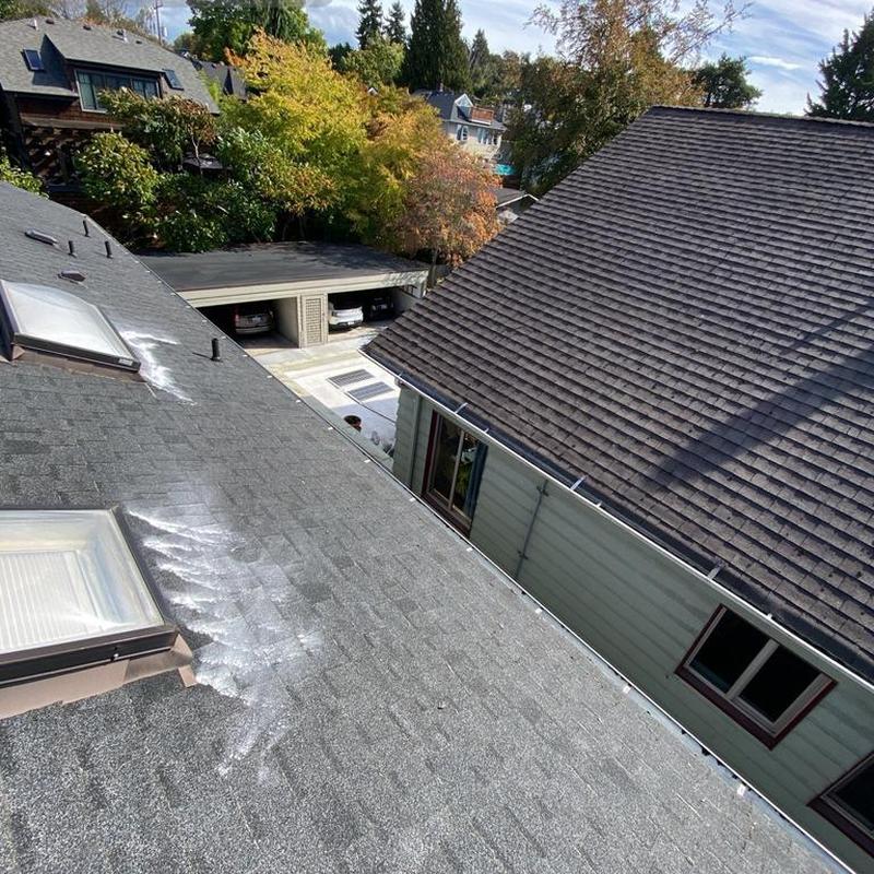 Endurant Roof completed a roof cleaning service in Kirkland, WA. The work included leaf blowing, gutter clearing, and moss treatment. This service helps preserve roof condition, prevent damage, and keep surfaces clean.