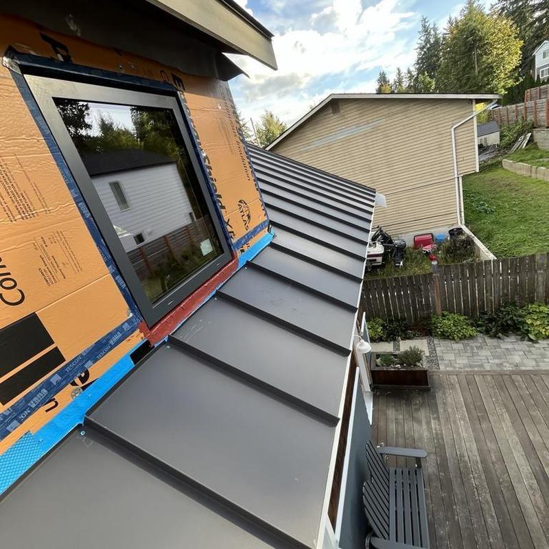 Endurant Roof installed standing seam metal roofing in Bellevue, WA. The team secured each panel with precision fasteners and finished the project with custom metal coping. This edge detail seals panel ends and helps prevent water intrusion while giving the roof a clean, defined border.