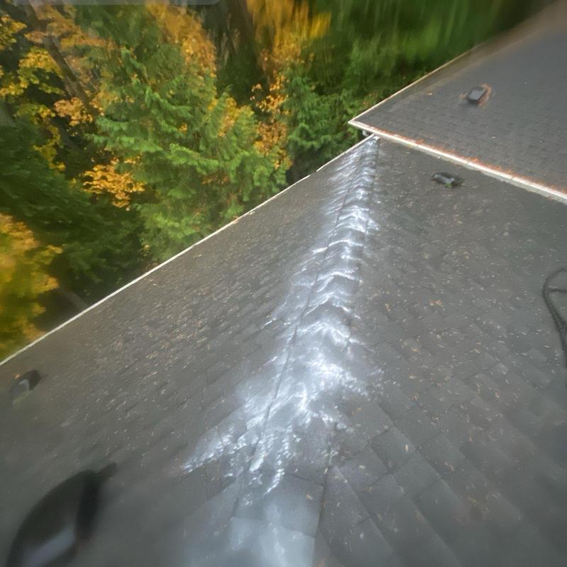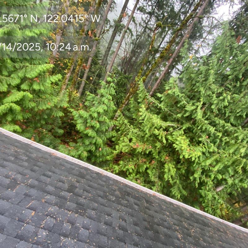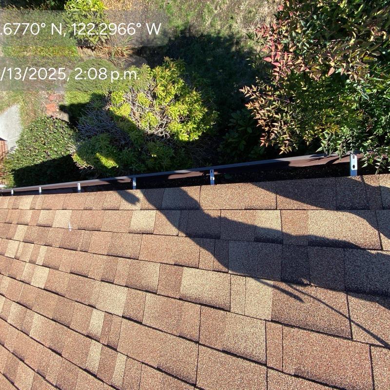 Endurant Roof cleaned gutters and roof valleys in Redmond, WA, removing debris and leaves with a full leaf blow. The team applied moss treatment to stop future growth and protect water flow. This service helps prevent clogs, overflow, and water damage, keeping the roof drainage system working properly.
