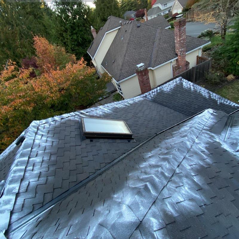 Endurant Roof removed old shingles and installed a waterproof underlayment in Seattle, WA. This underlayment strengthens the roof’s base and protects the home from leaks and weather damage, preparing it for new shingle installation.