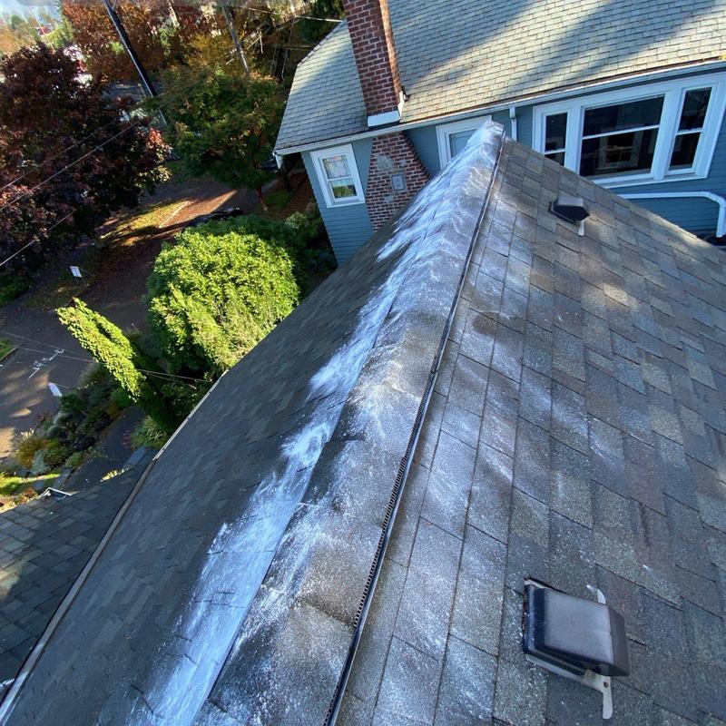 Endurant Roof provided a full roof cleaning service in Kirkland, Washington. The team removed roof debris with leaf blowers, cleared clogged gutters, and applied a moss treatment. This process helps reduce moisture damage and extends roof life through regular maintenance.