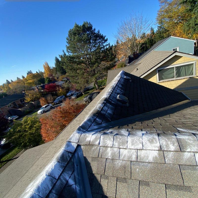 Endurant Roof performed roof maintenance in Renton, Washington. The service included leaf blowing to remove debris and a moss treatment to stop growth and moisture buildup. This helps protect the roof and extend its lifespan by reducing damage from organic material and trapped moisture.